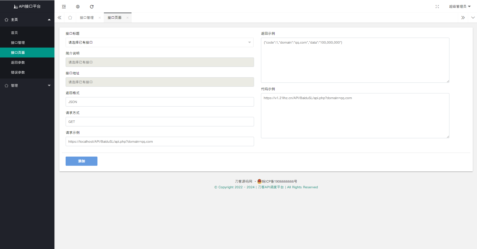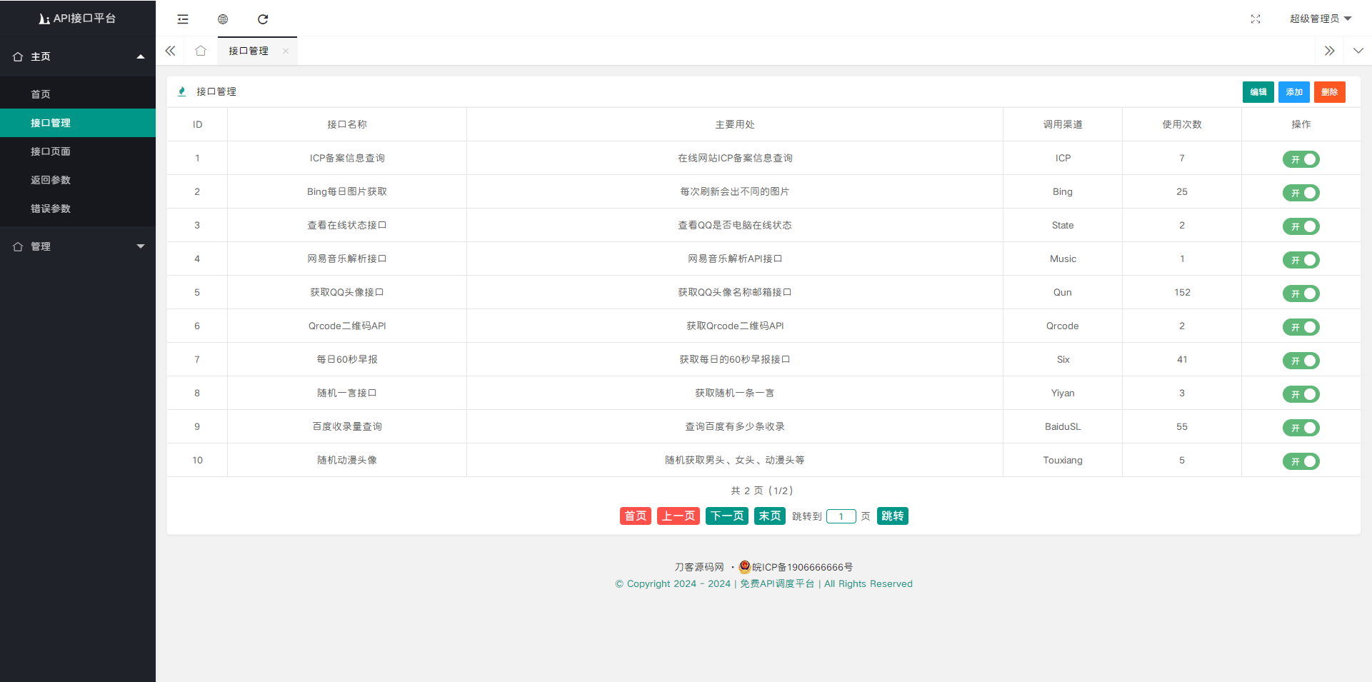 源码村资源网 » 2024全新开发的API接口调用管理系统网站源码及附带教程