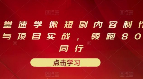 源码村资源网 » 10堂速学微短剧内容制作标准与项目实战,领跑80%同行