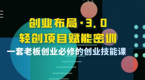 源码村资源网 » 创业布局·3.0轻创项目赋能密训,一套老板创业必修的创业技能课