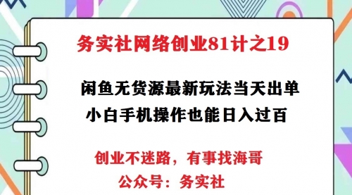 源码村资源网 » 务实社网创81之19:外面卖1999的闲鱼无货源爆款偏门玩法,小白0成本当天出单(附工具)