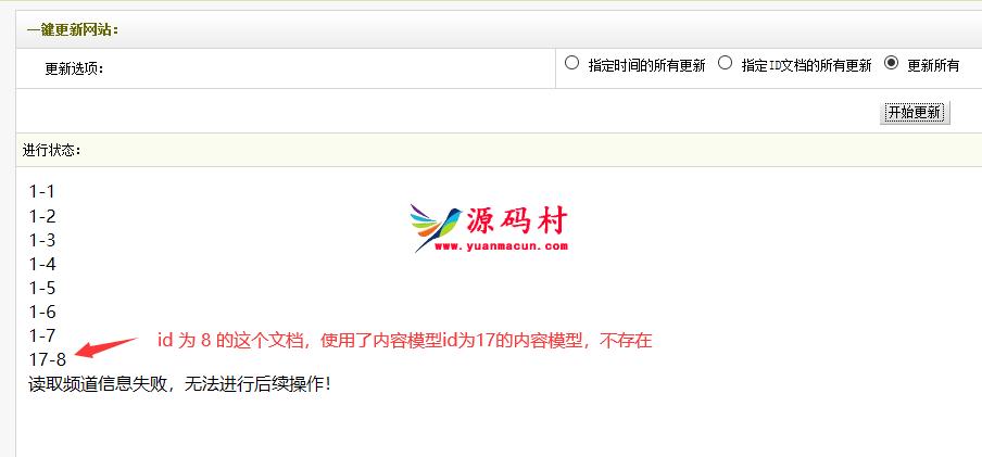 那是因为有文档使用了以前添加的内容模型和栏目,而内容模型又删除了,文档还在,生成全站或者生成文档时就会提示“读取频道信息失败,无法进行后续操作!”