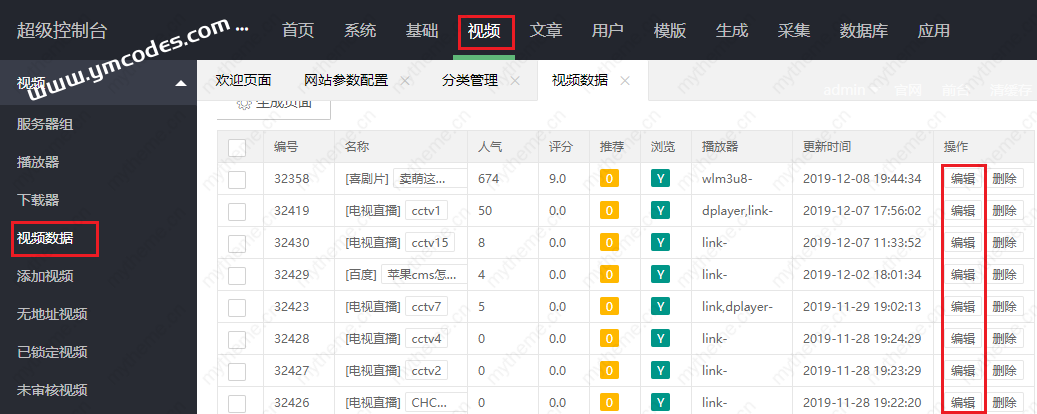 3,找到我们要屏蔽的视频,进行编辑。