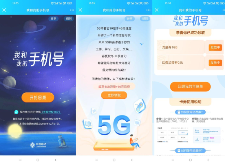 源码村资源网 » 移动领1~4G流量和2~10话费券