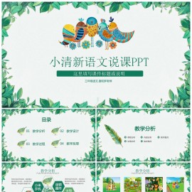 绿色清新简约树叶语文老师说课大赛示范课PPT模板下载