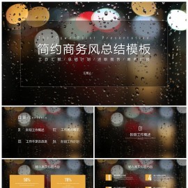 水滴玻璃简约商务风年终总结PPT模板下载